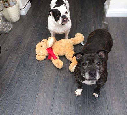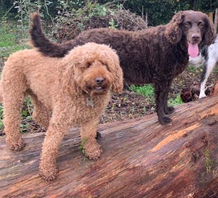 Nadine has been a second mum to Maggie and Mabel since they were both 8 weeks old, the adventures they go on with their doggy chums is priceless long walks with all the things dogs love, so much to stimulate them is wonderful when they come home with big smiles and settle down for a snooze and dream about the adventures they’ve been on with all their mates.